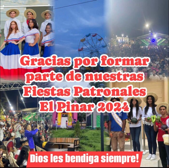 El comité organizador de las Fiestas Patronales El Pinar 2024 expresa su más sincero agradecimiento al Distrito Municipal El Pinar y a la provincia de San José de Ocoa.