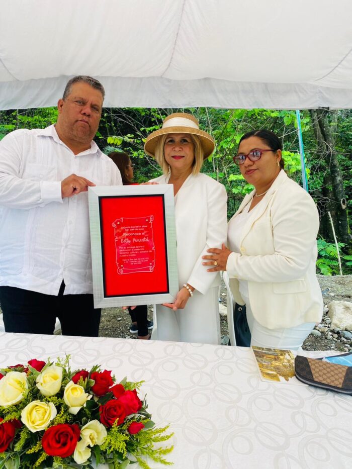 El acto fue ocasión para otorgar un reconocimiento por sus aportes a nuestra cultura y el desarrollo ecoturístico de la Provincia San José de Ocoa a la Sra. Betty Pimentel.