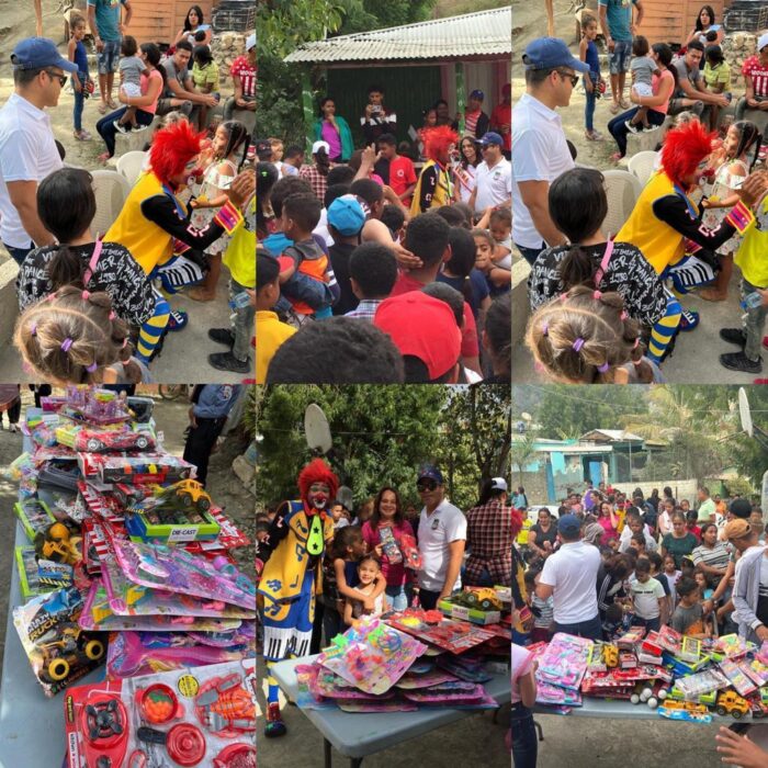 El alcalde Garis Pujols en compañía de la reina y su corte compartieron una tarde de alegría y gozo en la comunidad de los tramojos, El Pinar, acompañados de payasos, pinta caritas y helados, logrando así un grato intercambio de juguetes por sonrisas a los niños de la comunidad.