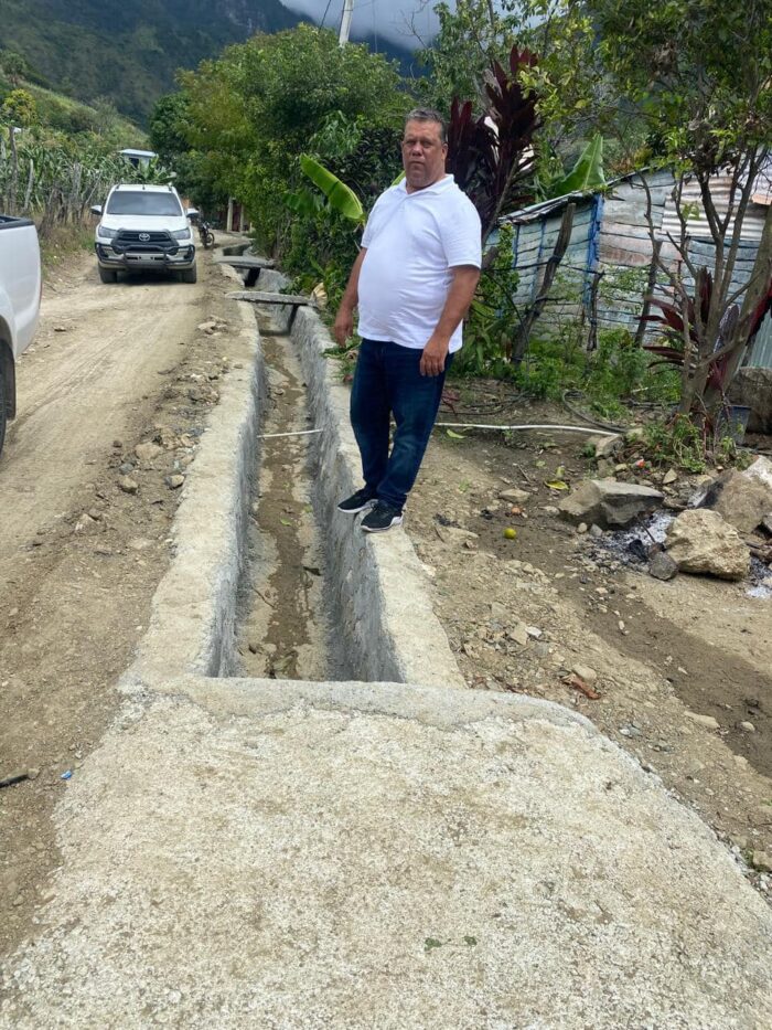 El Alcalde Félix B . Sánchez supervisa los trabajos de construcción de canaletas y badenes que se realizan en la comunidad la ciénaga, sector el capricho una obra clamada por sus habitantes ya que cuando llovía la cañada crecía y el agua se entraba en las viviendas de los comunitarios dañando sus pertenencias y poniendo en peligro la vida de los mismos.